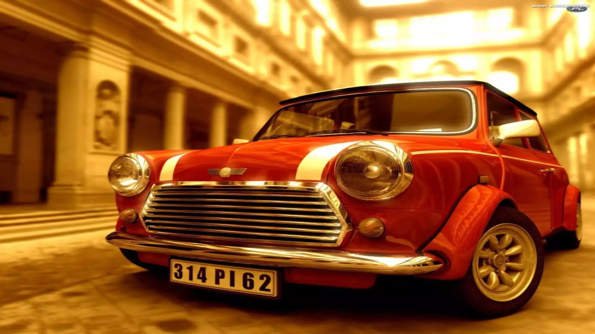 Halogeny, Mini Morris Stary Mini brytyjski Mini Mini jeden Mini Morris Cabrio Mini GB, Mini Mini Morris Mini Mini Morris, Rajdowy Mini, Czerwony, Samochód złoty, Mini